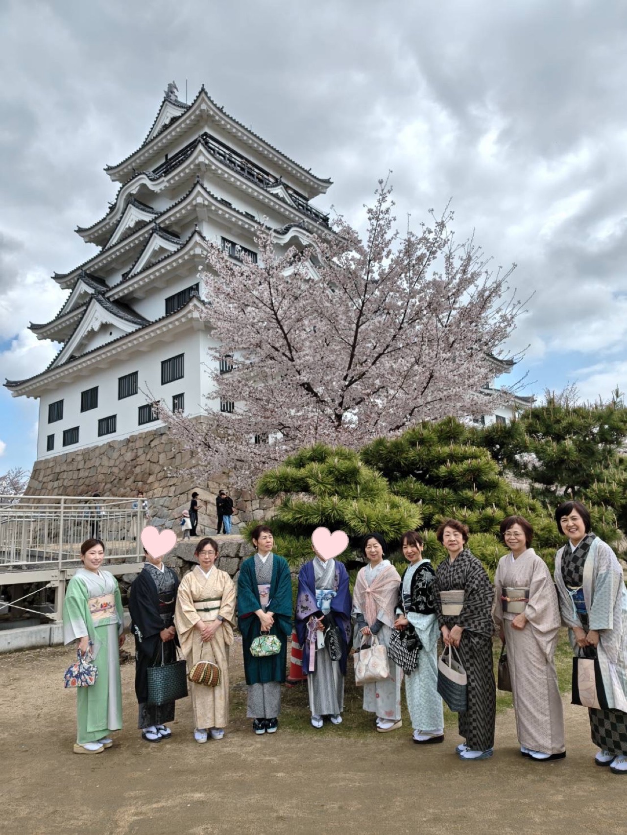 前日の雨は何処へやら…初夏を思わせる陽気に誘われて、お花見散策を楽しみました✨ 福山城の桜を愛で、福寿会館からは素敵なお庭から福山城を眺め、艮神社でさらなる着付け技術の向上を願いました。 極めつけは、惣門番所跡にある赤い太鼓橋(願掛け橋とも呼ばれるとか…)と桜をバックに記念撮影😄 ランチは、割烹『ありやす』にてこれまた立派な桜を眺めながら。 この時期ならではのお料理におしゃ・・・