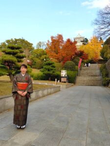 学院で名古屋帯のお太鼓結びを習ったので、福山城に行って来ました。